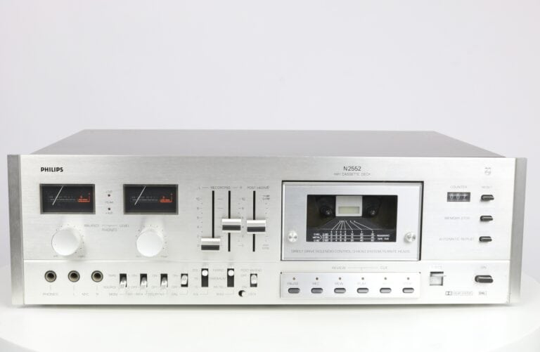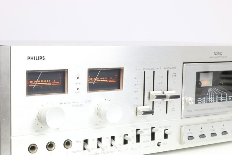 De Philips N2552 is een hoogwaardig cassette‑deck uit het begin van de jaren ’80 en behoort tot de topklasse van analoge opname‑ en weergaveapparatuur. Dit betreft een gerefurbished exemplaar, technisch nagekeken en in goede staat.