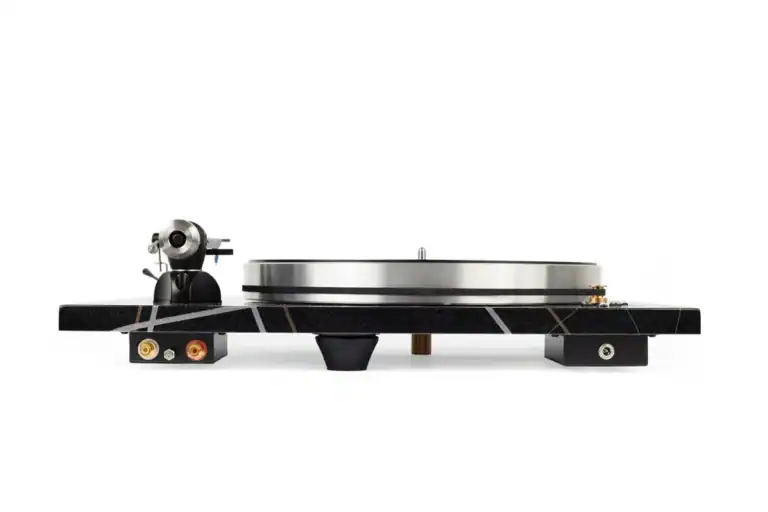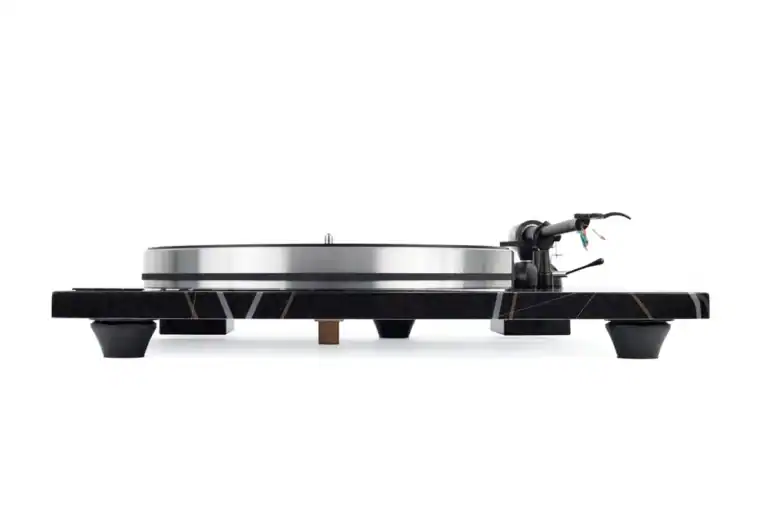 De toonarm is statisch gebalanceerd en instelbaar voor nauwkeurige tracking en naalddruk. Het meegeleverde Sumiko Black Pearl element is een Moving Magnet-cartridge die bekend staat om zijn vloeiende middengebied en zachte maar gedetailleerde hoogweergave — ideaal voor lange luistersessies zonder luistermoeheid.