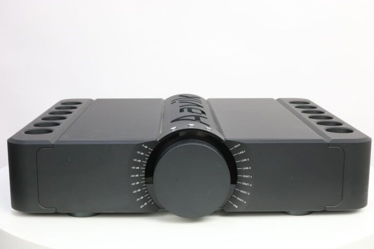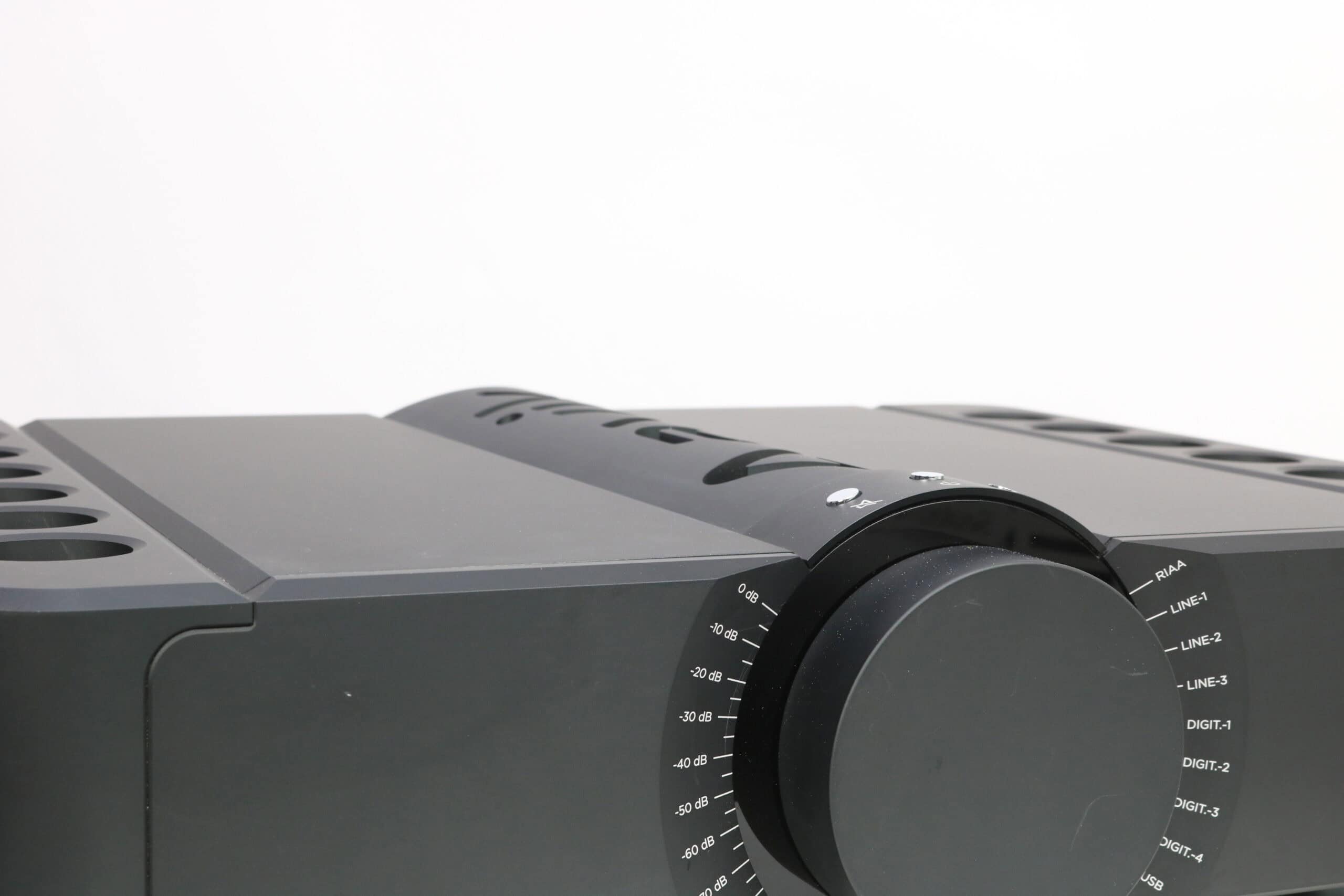 Operation is handled via the elegant OLED display on the top, the supplied remote, or the unique front-mounted scroll wheel. A rare piece that perfectly combines technology, beauty, and performance.