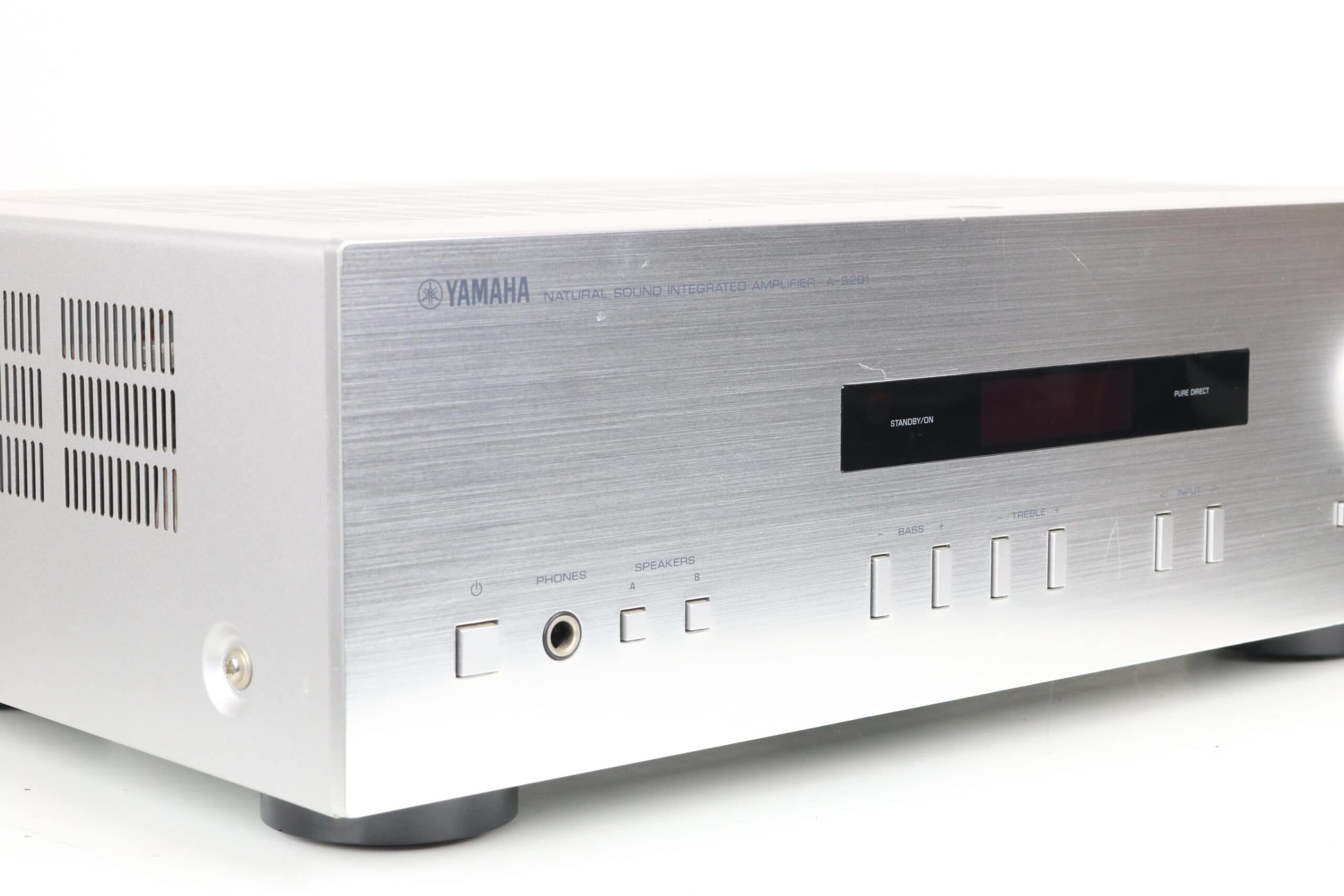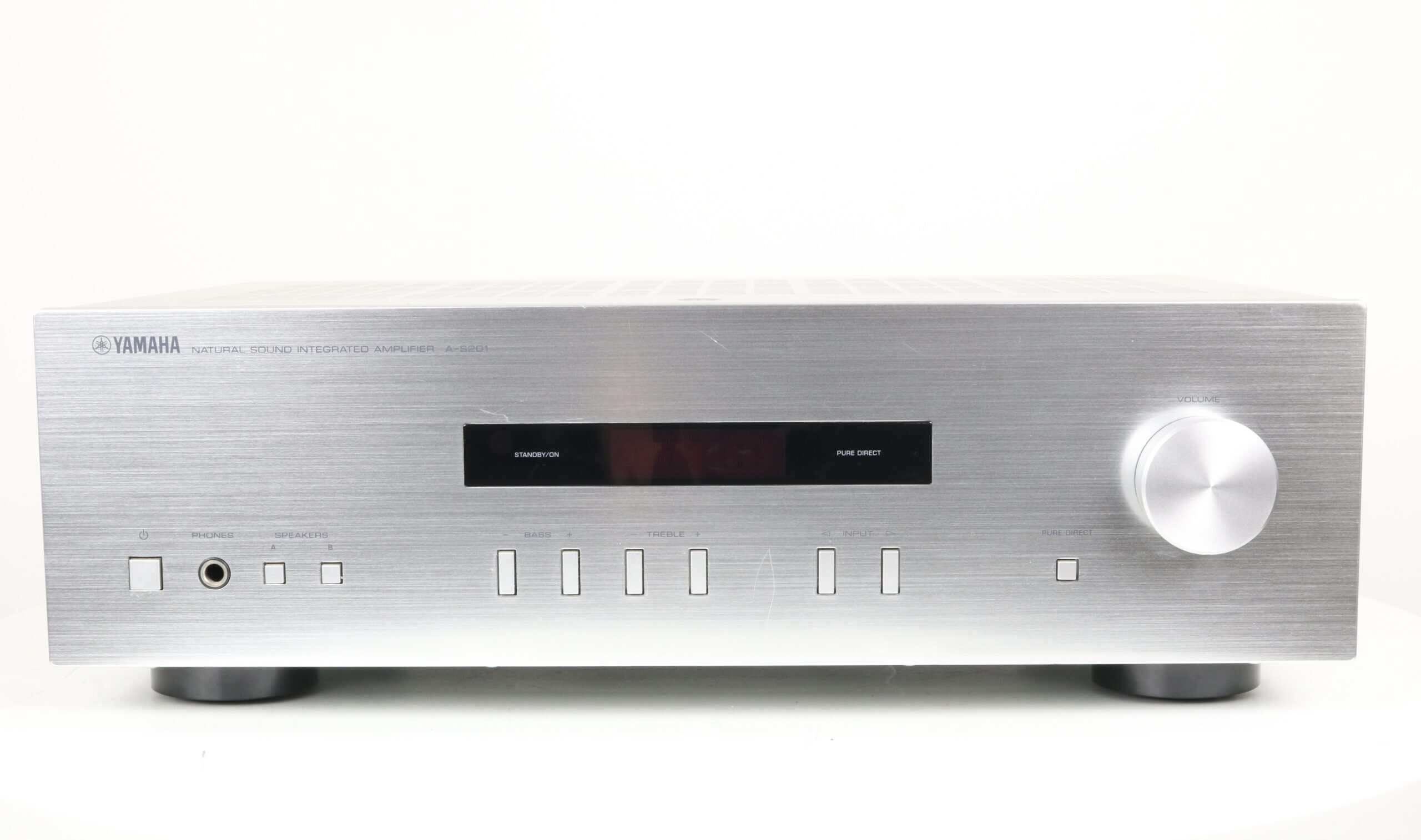 The Yamaha A-S201 is a reliable integrated amplifier known for its clear and powerful sound reproduction. This model is designed for everyday use and serves as a solid foundation for a stereo setup.
