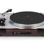 The solid construction and premium finish contribute to stable, low-resonance operation. Thanks to the elegant walnut wooden plinth and black top plate, this turntable fits perfectly into both modern and classic hi-fi systems.