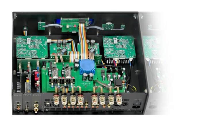 De AVM A5.2T is gebouwd rondom een krachtige solid-state eindtrap en een muzikale buizenvoortrap. Dit hybride ontwerp zorgt voor warmte en finesse in het middengebied, zonder in te leveren op dynamiek of controle. Dankzij de modulaire opbouw zijn uitbreidingen zoals een phono-module of streamingoptie mogelijk.