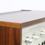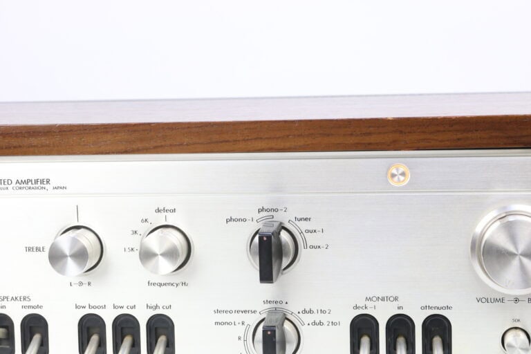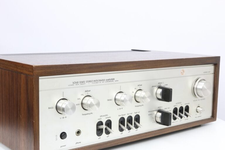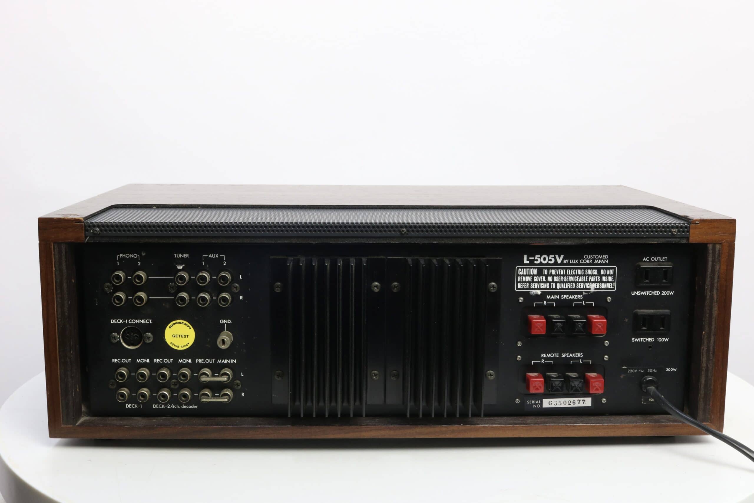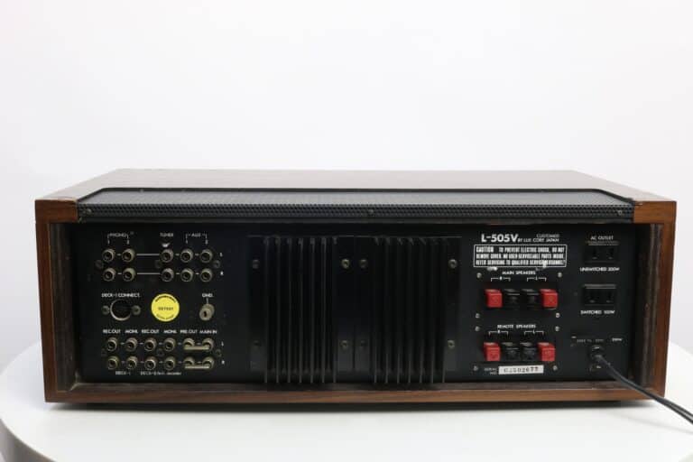 De L-505V levert 55 watt per kanaal aan 8 ohm, met een brede frequentierespons en een lage vervorming van slechts 0,03%. Dankzij een dempingsfactor van 40 stuurt hij luidsprekers strak en gecontroleerd aan. De phono-ingang ondersteunt MM-elementen en het ontwerp is klassiek Luxman: functioneel, degelijk en gebouwd met oog voor detail.